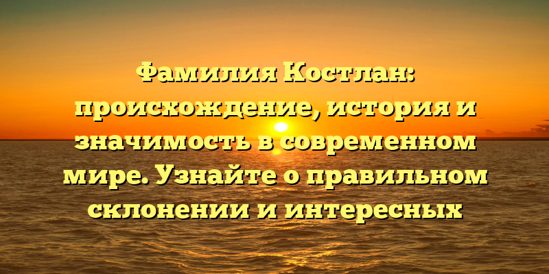 Изучаем фамилию Костлан: происхождение, история и значимость в современном мире с полезной информацией о правильном склонении и увлекательными фактами!