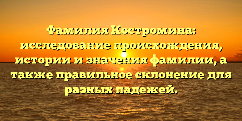 Фамилии часто являются наследственными и передаются от родителей к детям. Но кто знает, откуда происходит его фамилия? Какова история этой фамилии? Какое правильное склонение для разных падежей? Эти вопросы могут вызвать интерес, особенно если исследовать историю одной фамилии, включая фамилию Костромина.