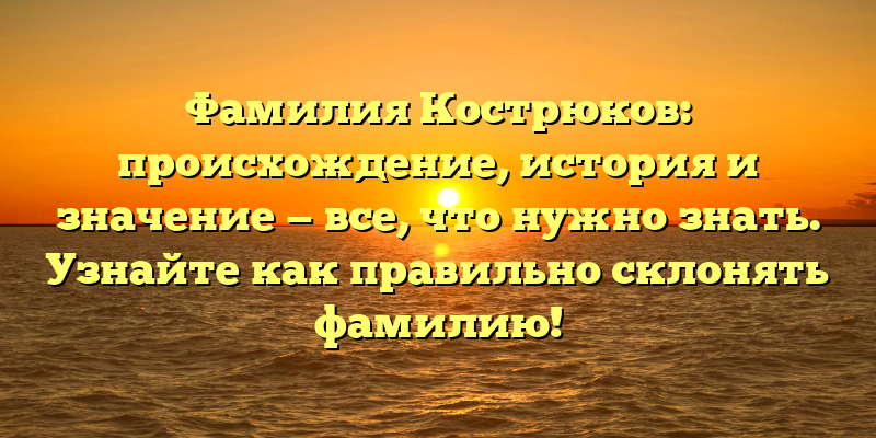 - Фамилия Кострюков: история, происхождение и правильное склонение – полное руководство