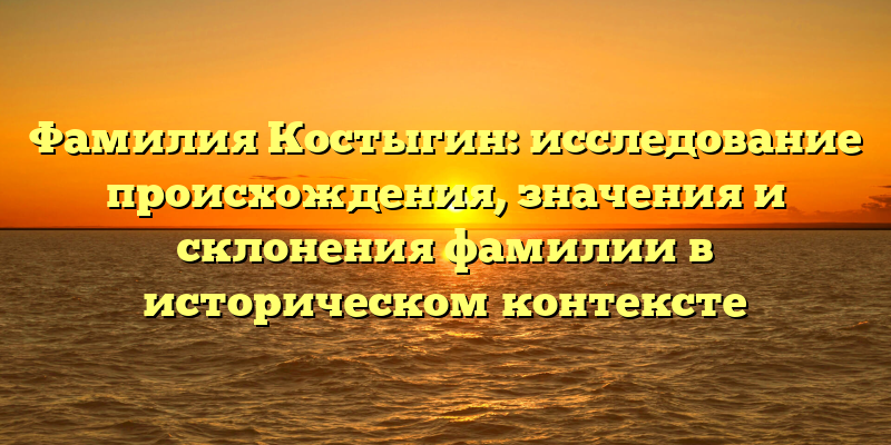 - Фамилия Костыгин: исторический обзор происхождения, значения и склонения в контексте семейной истории