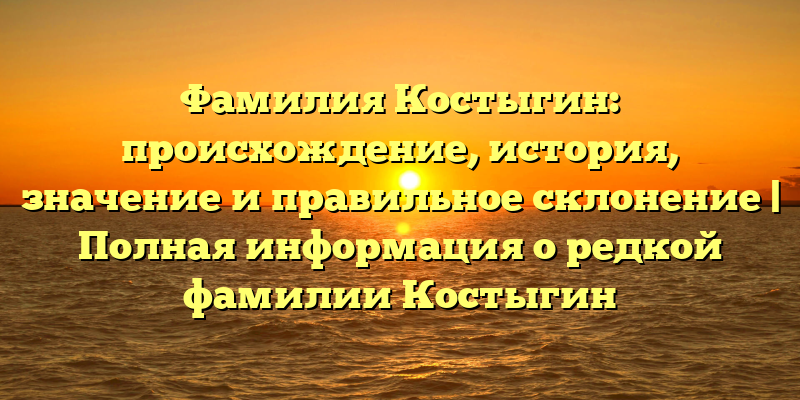 - Фамилия Костыгин: происхождение, значение и правильное склонение — полная история редкой фамилии.