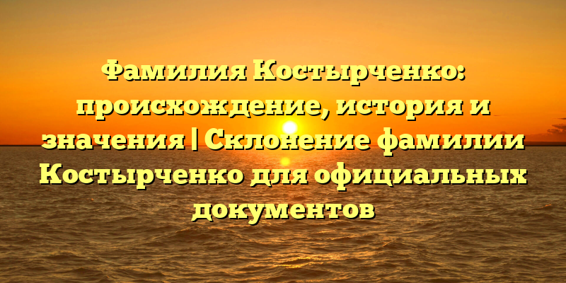 - Раскрываем тайны фамилии Костырченко: происхождение, история и правильное склонение для официальных документов