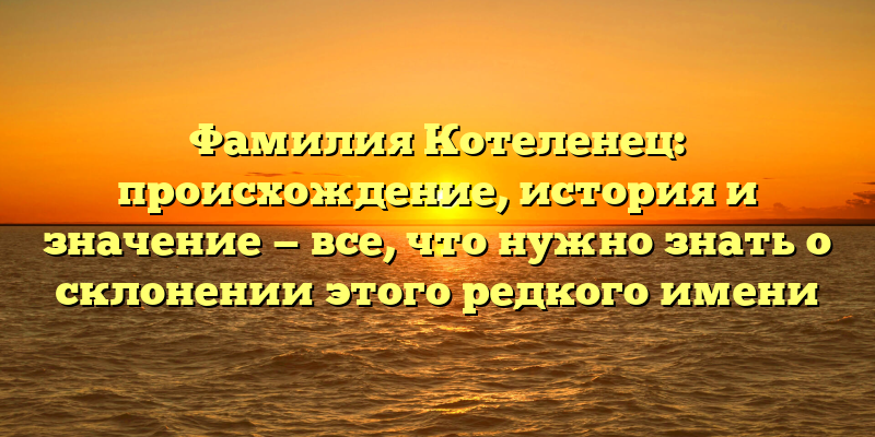 - Фамилия Котеленец: происхождение, история и значение — полный гайд по склонению этого редкого имени для всех, кто хочет знать больше