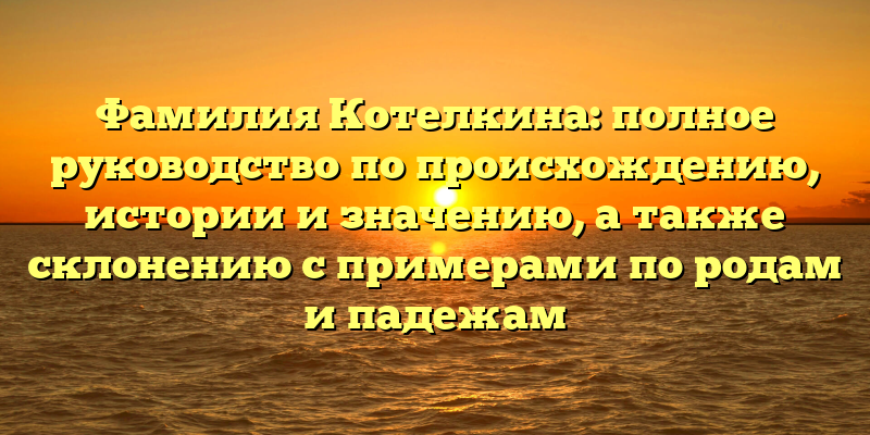 - Фамилия Котелкина: полное руководство по происхождению, истории и значению, а также склонению с примерами по родам и падежам