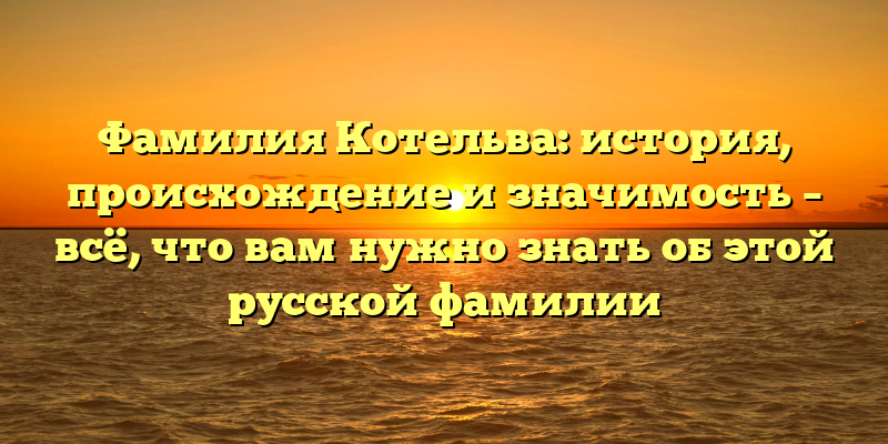 - Отследить свои корни: рассказ об истории, происхождении и значимости фамилии Котельва