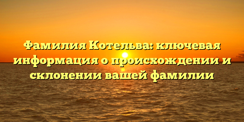 - Фамилия Котельва: историческое происхождение и правильное склонение — все, что вы хотели знать!