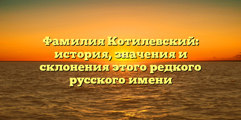 Сегодня фамилия Котилевский довольно редкая, и ее носители могут найти интересные сведения о своем роде и происхождении. В этой статье мы расскажем о значении этого имени и правильных склонениях фамилии Котилевский.
