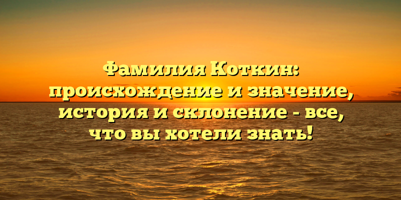 - Фамилия Коткин: исследуем происхождение, значение и склонение в истории