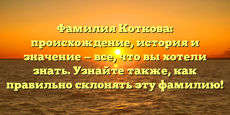 - Фамилия Коткова: происхождение, история и правильная склоняемость — всё, что вам нужно знать!