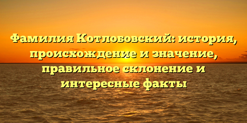 - Фамилия Котлобовский: происхождение, значение и склонение, а также увлекательные факты в истории рода.