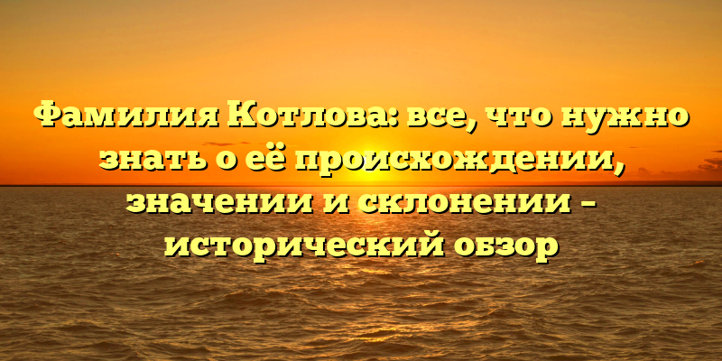 Открытие тайн происхождения и значимости фамилии Котлова: исторический обзор и правила склонения