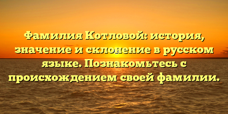 Фамилия Котловой: происхождение, значения и склонение в русском языке — узнайте свою собственную историю!