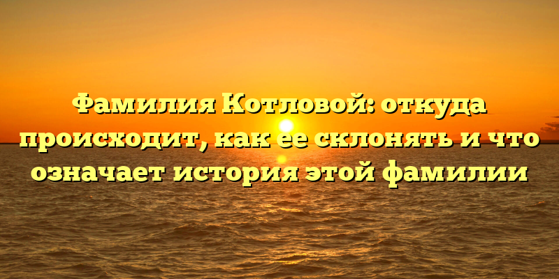 - История фамилии Котловой: происхождение, склонение и значение
