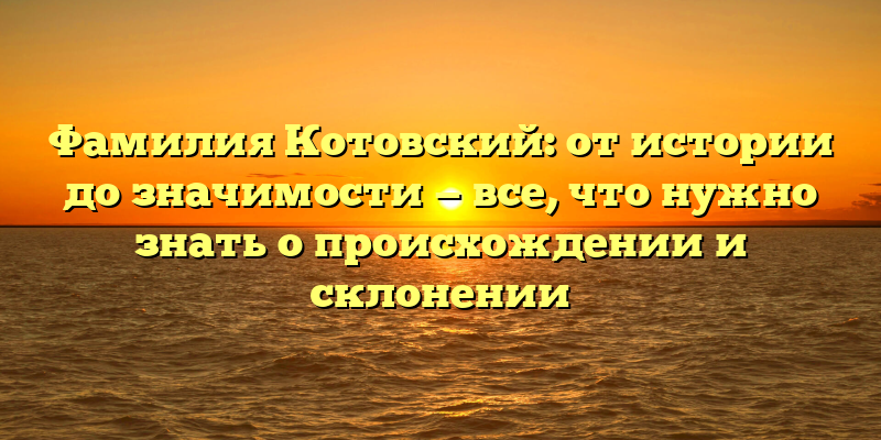 В данной статье мы рассмотрим происхождение фамилии Котовский и детально изучим все возможные вариации написания. Вы узнаете, как правильно склонять имя и какие особенности есть у фамилии. Присоединяйтесь!