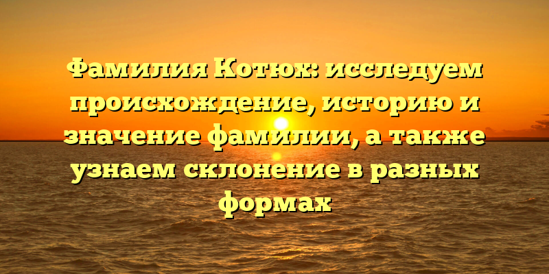 Котюх — довольно распространенная фамилия в России. Она имеет несколько гипотез происхождения, которые мы рассмотрим ниже. Данная статья поможет узнать все о фамилии Котюх — от ее истории и значения до правильного склонения в разных падежах.