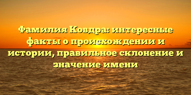- Фамилия Ковдра: происхождение, история и значения имени. Как правильно его склонять?