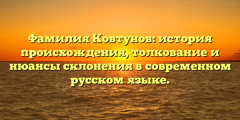 - Раскрытие тайн фамилии Ковтунов: история происхождения, правильное склонение и особенности в современном русском языке.