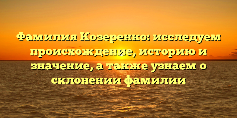 - Фамилия Козеренко: история происхождения, значения и правильное склонение – полный гид