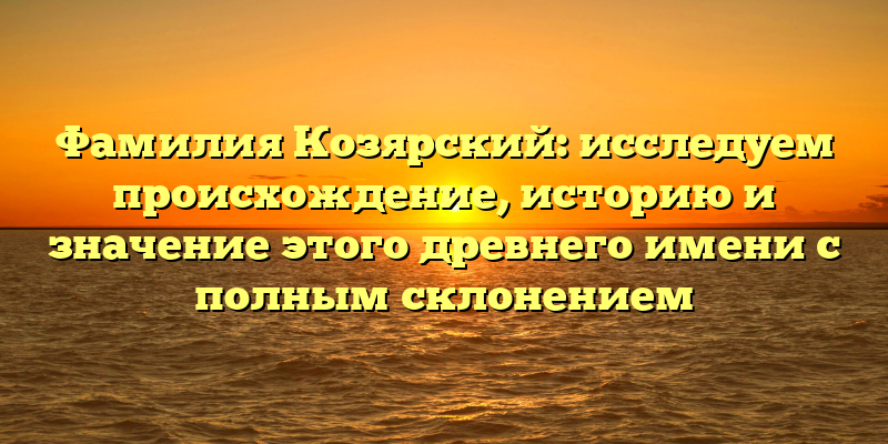 Исследуем происхождение и историю древнего имени Козярский: полное склонение и его значение