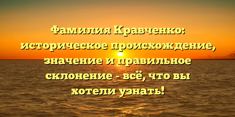 Исследование фамилии Кравченко: происхождение, значение и правильное склонение в одной статье.