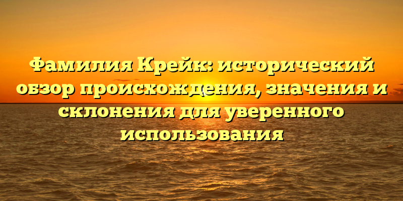 - Фамилия Крейк: происхождение, значение и склонение — все, что нужно знать для уверенного использования