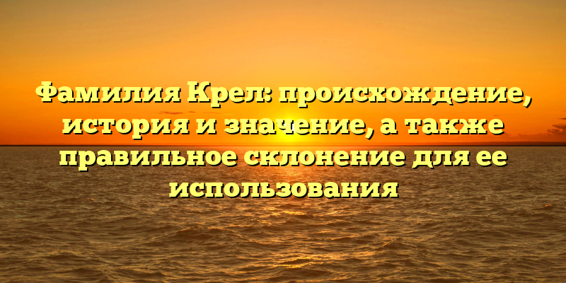 - Фамилия Крел: история, происхождение и правила ее использования