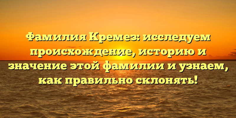- История и происхождение фамилии Кремез: правильное склонение и значение имени