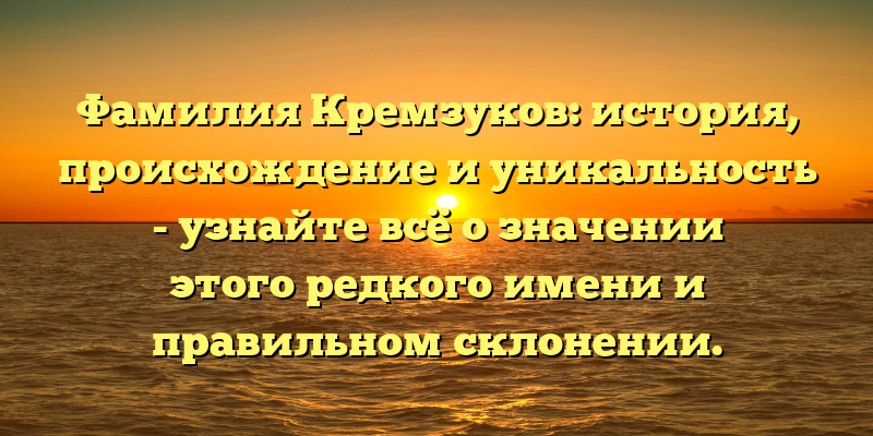- Фамилия Кремзуков: происхождение и значение имени, а также правила склонения.