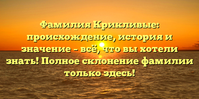 Узнайте всё о фамилии Крикливые: происхождение, история и значение, включая полное склонение, в нашей статье!