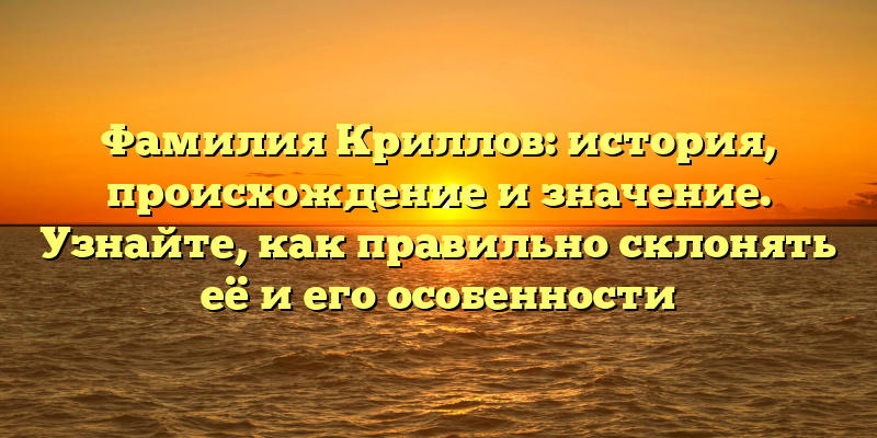 - Фамилия Криллов: история происхождения, значение и правильное склонение – все, что нужно знать!