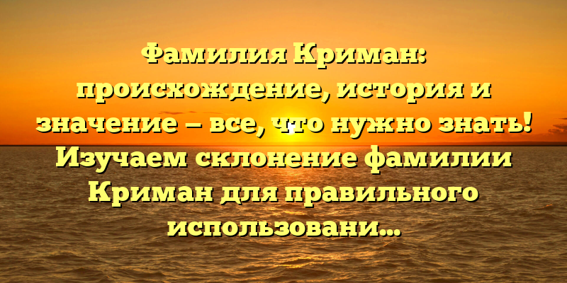 - История и происхождение фамилии Криман: узнайте о ее значении и правильном склонении