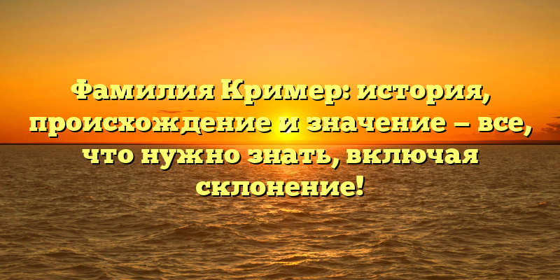 - Фамилия Кример: происхождение, история и склонение – всё, что важно знать!