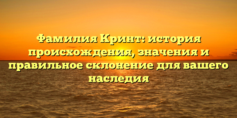 - Фамилия Кринт: знакомство с историей, значениями и корректным склонением для сохранения вашего наследия