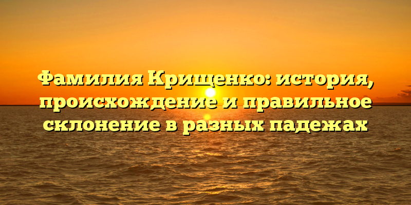 - Фамилия Крищенко: генеалогия, происхождение и грамотное склонение во всех падежах