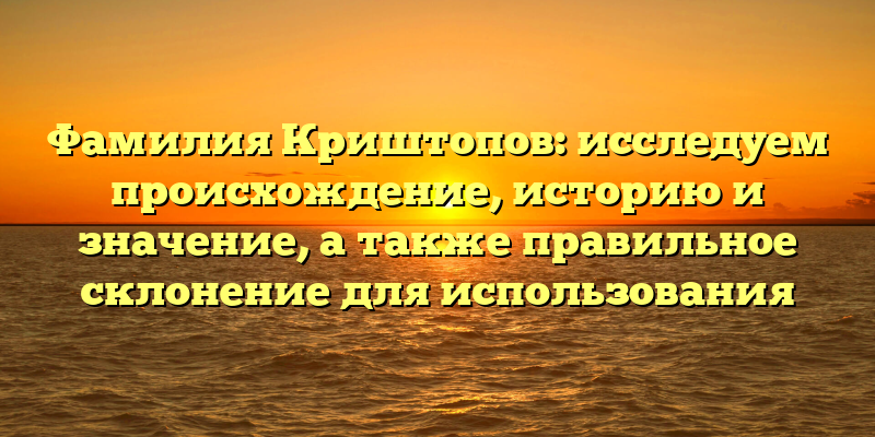 Исследуем происхождение и историю фамилии Криштопов: значимость и правильное склонение для употребления в современном мире