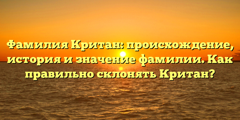 Узнайте все о фамилии Критан: происхождение, история и правильное склонение в одной статье!