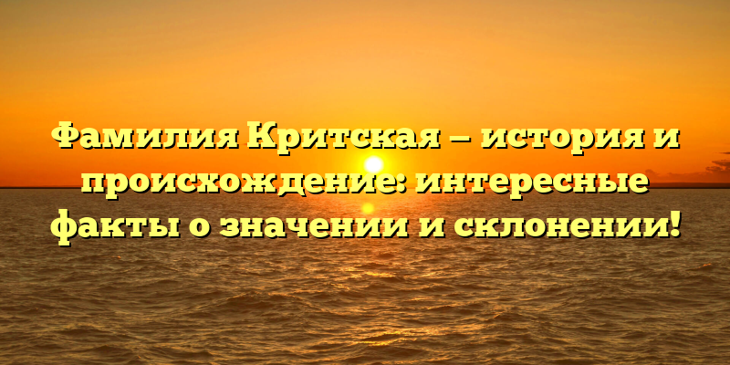 - Фамилия Критская: история и происхождение. Узнайте интересные факты о значении и правильном склонении
