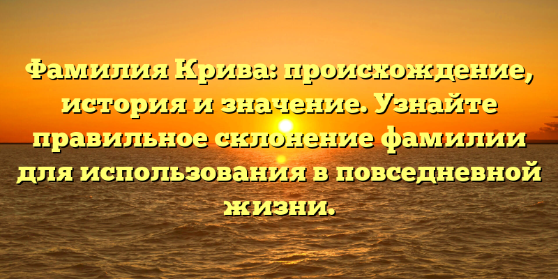 - Исследуем происхождение, историю и значение фамилии Крива: узнайте, как правильно склонять ее в повседневной жизни.