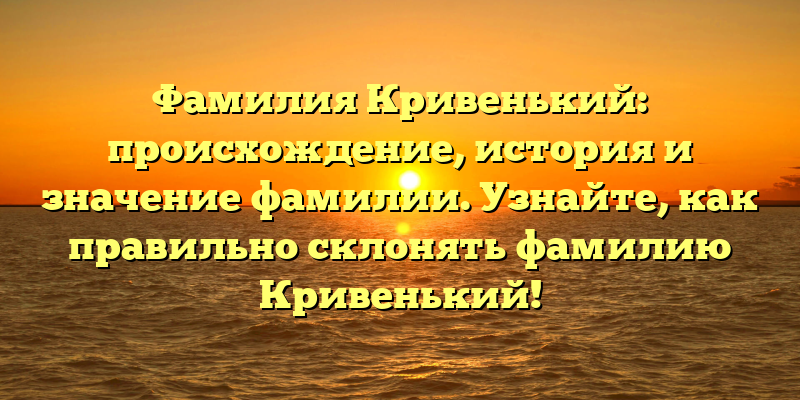 - Фамилия Кривенький: история происхождения, значение и правильное склонение — полное руководство.