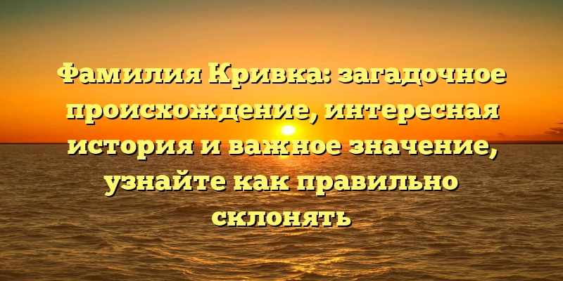 Раскрытие тайн происхождения фамилии Кривка: история, значения и правила склонения