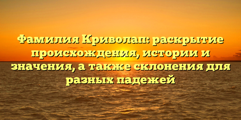 - Фамилия Криволап: происхождение, история и значения, а также правильные склонения в разных падежах — полное руководство