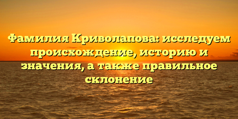 - Фамилия Криволапова: происхождение, история, значения и правила склонения — полное руководство.