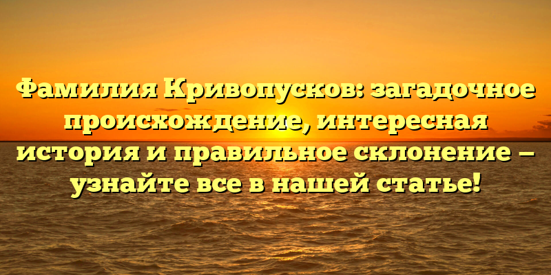 - Раскрываем тайны происхождения и истории фамилии Кривопусков: советы по правильному склонению в нашей статье!