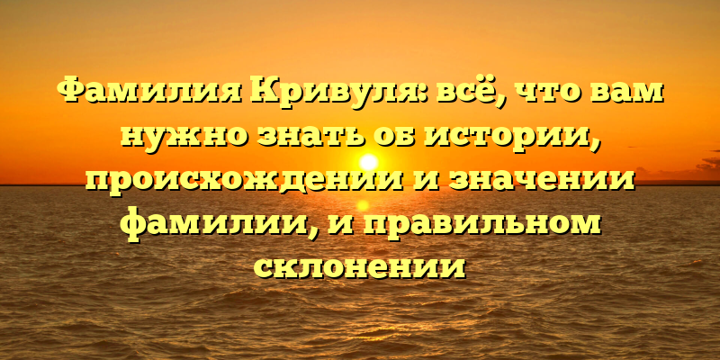 - Фамилия Кривуля: полный гайд по истории, происхождению, значении и правильному склонению для фанатов генеалогии и языка