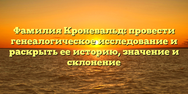 Исследование генеалогии фамилии Кроневальд: раскрытие ее истории, значения и склонения