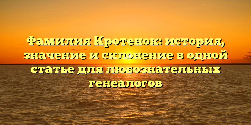 - Фамилия Кротенок – всё, что нужно знать генеалогу: история, значение и правильное склонение в одной статье