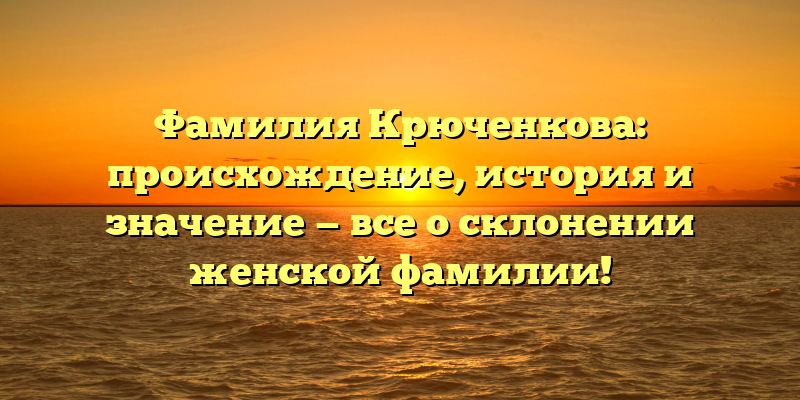 - Фамилия Крюченкова: история, происхождение и значимость. Узнайте, как правильно склонять женскую форму!