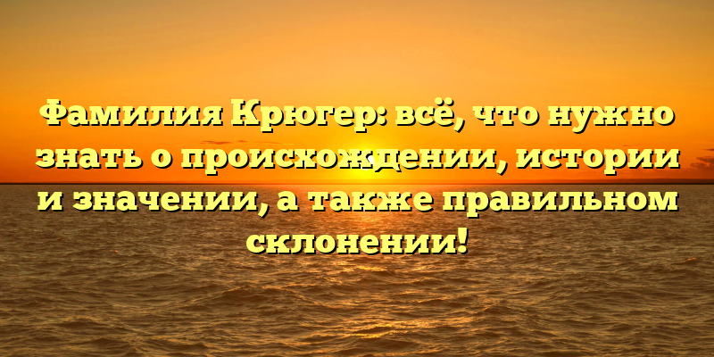 Фамилия Крюгер: история, происхождение и значение + полезные советы по правильному склонению