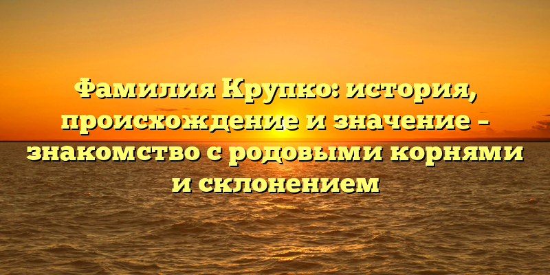 - Фамилия Крупко: происхождение, значимость и склонение – раскрываем тайны родовых корней