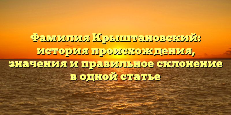 - Фамилия Крыштановский: происхождение, значения и правила склонения на одной странице